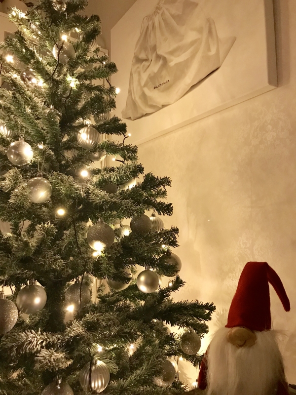 God jul på er! Vi hoppas att ni har fått en härlig julafton och att ni har ätit gott och spenderat tid med nära och kära! Vi har ätit en massa mat och godsaker och bara tagit det lungt och vilat. Här är en glimt av vår julgran och en liten tomte! Vi sprayade vår gran med snöspray och klädde dem med silverkulor den här julen, så vi hoppade över de röda kulorna. Det blev en riktigt hit här hemma.