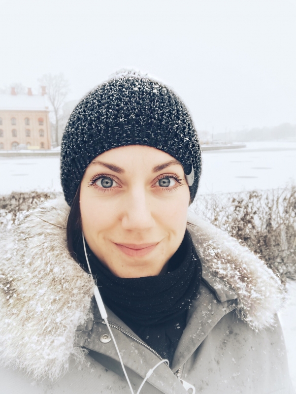 En riktig vinterprommenad mitt i snöfallet! Det är väldigt vackert när man är tar en prommenad och snön faller ner. Det här var taget igår och idag finns knappt någon snö kvar. Men eftersom det bli mörkt fort nu så jag vill tipsa om min reflexmössa.